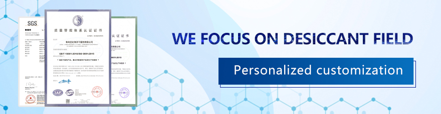 Example 1: Silica gel desiccant is a kind of physical desiccant. Silica gel desiccant is usually prepared by reacting sodium silicate and sulfuric acid, and after a series of post-treatment processes such as aging and acid foaming. Silica gel desiccant is an amorphous substance, and its appearance is generally colorless, blue, orange and transparent bead-shaped particles. There are many pores extending in all directions inside. The principle of moisture absorption is to use these pores to adsorb water molecules in the air into its structure. in.